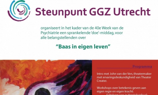 Steunpunt GGZ organiseert deze middag in het kader van de 40e Week van de Psychiatrie, met als thema "Baas In Eigen Leven!"